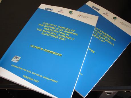 This Voter's Guidebook presents brief, unbiased, comparative information on activities, objectives, goals and program fundamentals of political parties participating in the Republic of Armenia's National Assembly elections 2007. It is designed to be widely disseminated among NGOs and international organizations, political parties, education institutions, foundations, state authorities and the general public.