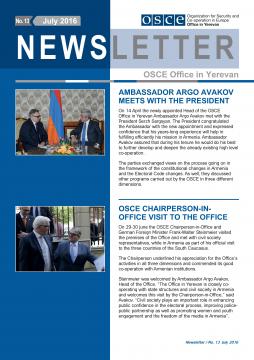 The Newsletter highlights the activities of the OSCE Office in Yerevan for the period of January - July 2016.