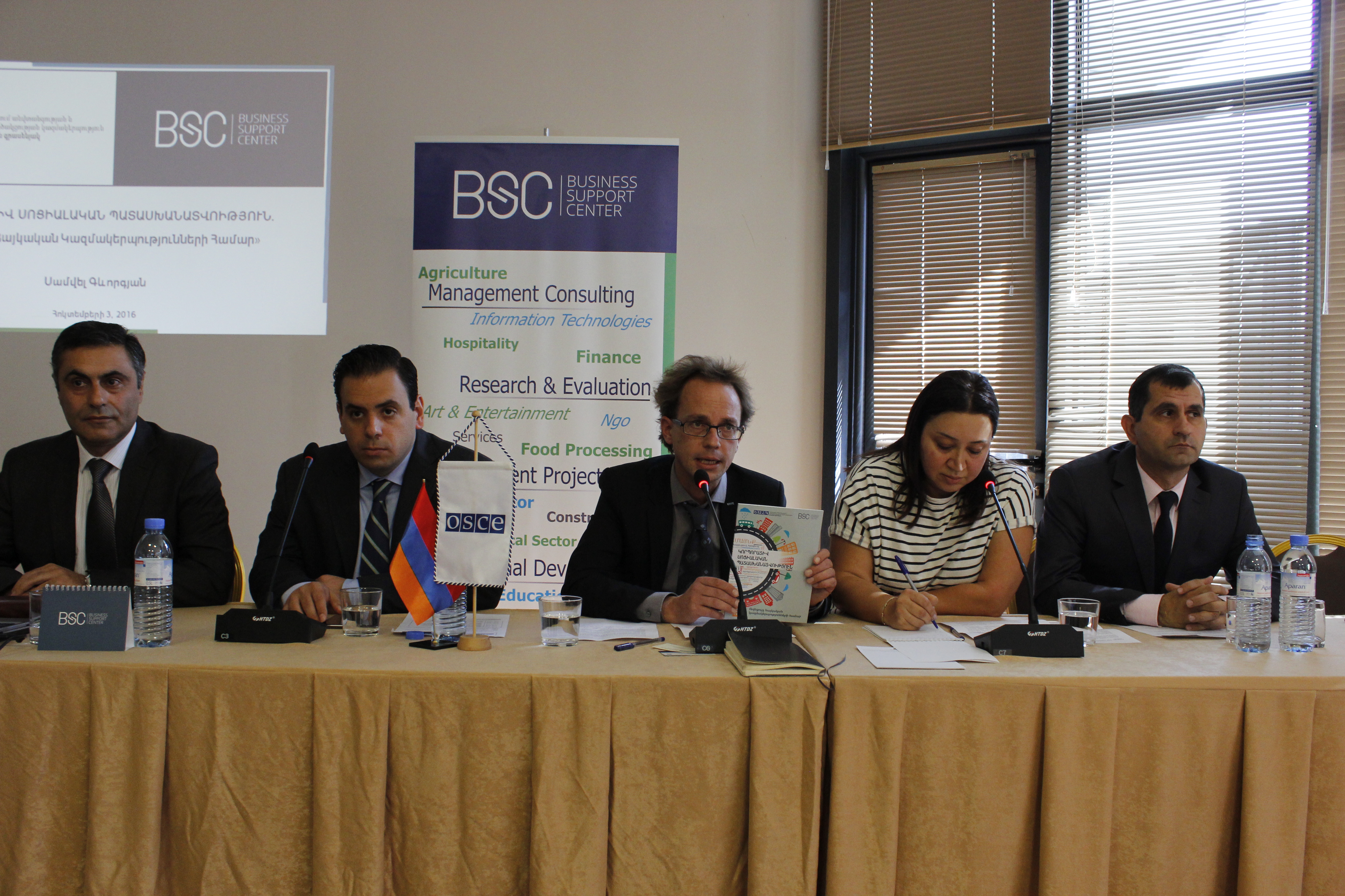 A presentation and discussion on Social Corporate Responsibility held with OSCE Office support in Yerevan, 5 October 2016.