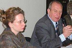 Head of OSCE Office in Yerevan, Vladimir Pryakhin, and Council of Europe Special Representative to Armenia, Natalya Voutova, at a roundtable on draft law on public gatherings and rallies, Yerevan, 22 April 2004.