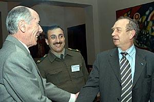 Ambassador Vladimir Pryakhin, Head of the OSCE Office in Yerevan (right), at a workshop on identification of trafficking victims, Yerevan, 20 December 2003.