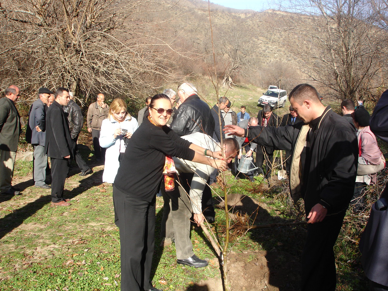 Jeannette Kloetzer, Economic and Environmental Officer at the OSCE Office in Yerevan (left), helped to plant trees in the Syunik province after the opening of Armenia's first regional Aarhus Centre, 9 December 2005.