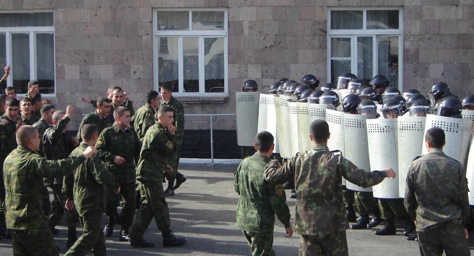 Armenian police officers undergo public order management training in Yerevan during an assessment conducted by the OSCE Office, 14 October 2009. (OSCE/Laura Hayruni)
