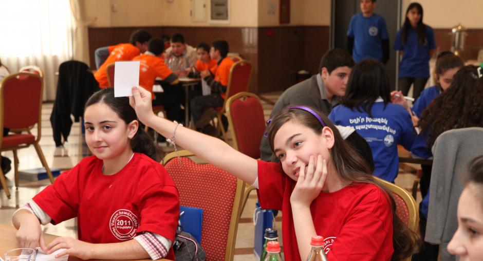 Some 50 students from eight schools in Yerevan participated in an interactive game organized by the OSCE Office in Yerevan and the Yerevan Club of Intellectual Games in Yerevan on 24 November 2011. The game was designed to raise awareness on human rights, building upon the state educational programme.