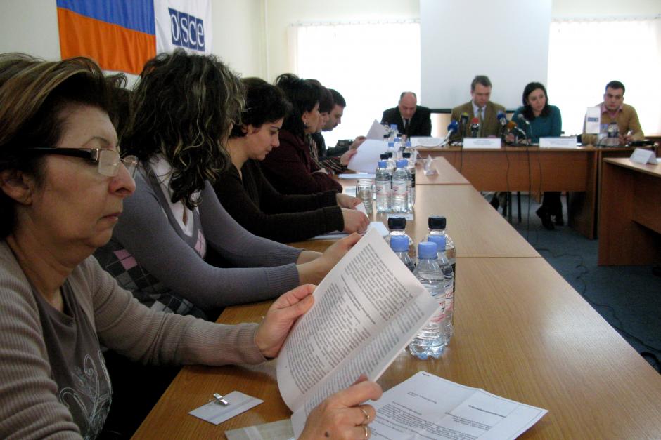 Participants at the presentation of an OSCE-supported study on vocational training opportunities for young offenders in Armenia, Yerevan, 24 January 2012.
