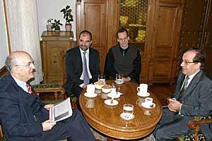 The Head of the OSCE Office in Zagreb, Ambassador Jorge Fuentes (l), and war crimes trial monitors, Nenad Maric and Nebojsa Paunovic (centre), meet the President of Sibenik County Court, Sanibor Vuletin, 10 February 2009.