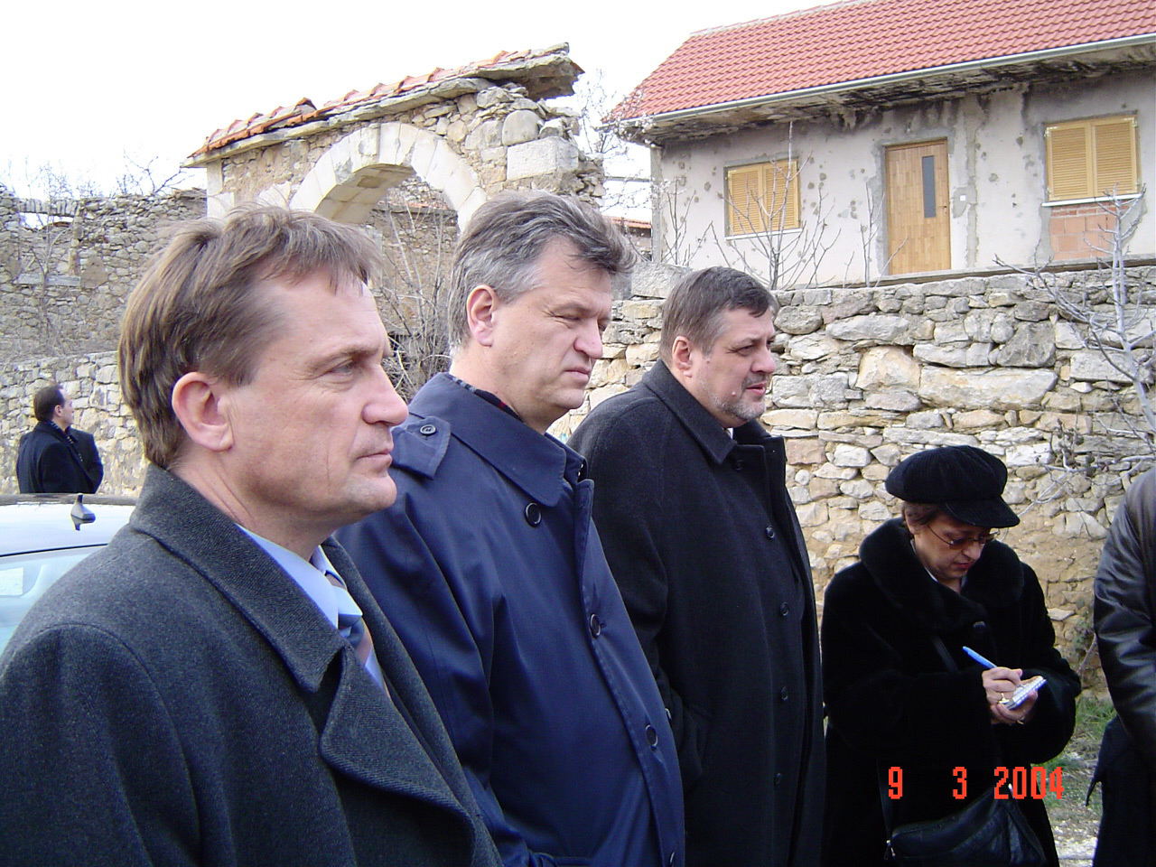 OSCE Secretary General Jan Kubis visited the Dalmatian region of Croatia with Development Minister Bozidar Kalmeta and Foreign Minister Miomir Zuzul (left to right) to become acquainted with refugee return issues, 9 March 2004.