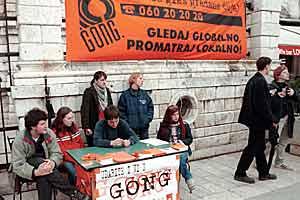 GONG, a domestic NGO funded by the OSCE, disseminates information for minority council elections in Croatia on 18 May 2003.