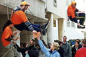 Distribution of election information by volunteers of GONG, a domestic NGO supporting minority council elections in Croatia on 18 May 2003.