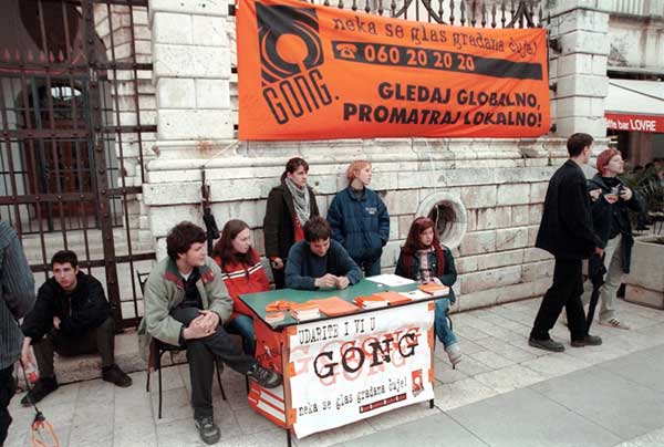 GONG volunteers disseminating information on minority council elections in Croatia on 18 May 2003.