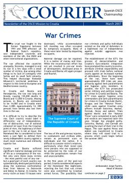Newsletter of the OSCE Mission to Croatia. In this issue: War Crimes; Closing of the FO Karlovac; Water Management; Human Rights Institutions, Access to Justice, and Minority Protection; War crimes prosecution; Rule of Law Unit