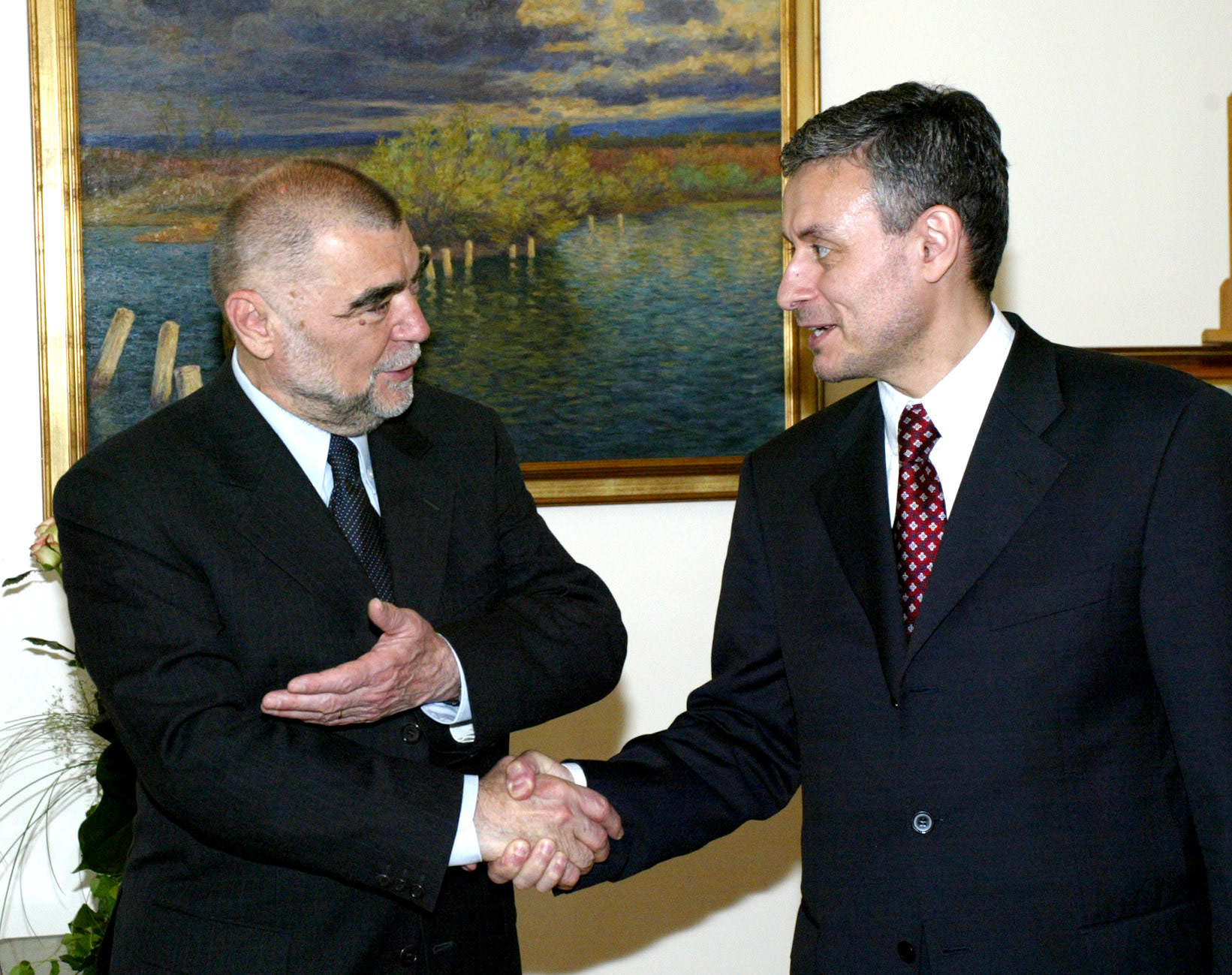 OSCE Chairman-in-Office Solomon Passy (right) meets Croatian President Stjepan Mesic in Zagreb, 10 May 2004.