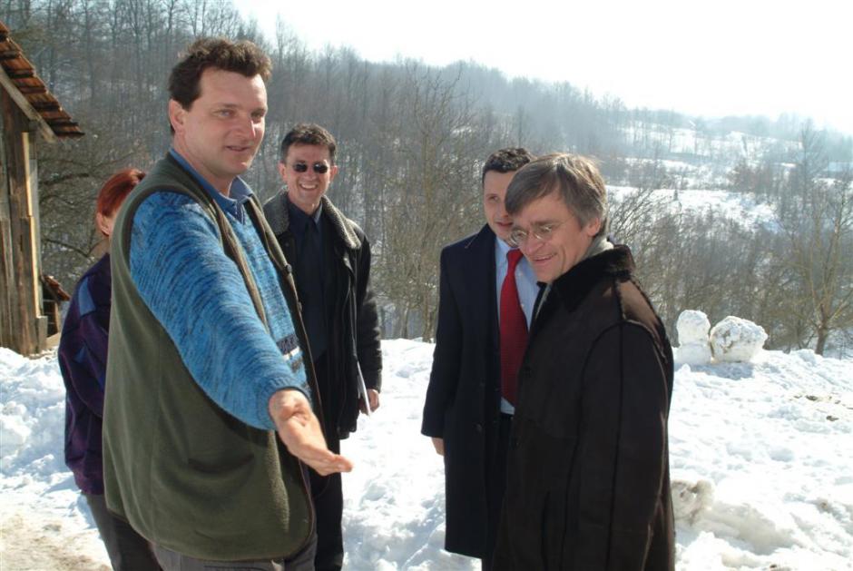 Nedjeljko Vukdragovic (left) tells OSCE Mission Head Peter Semneby of his daily struggles as a returnee, 10 February 2005.