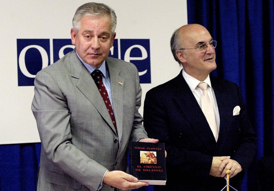 Croatian Prime Minister Ivo Sanader (left) visited the OSCE Mission to Croatia Headquarters in Zagreb, 7 June 2005. Mission Head Ambassador Jorge Fuentes briefed him about the Mission's work.
