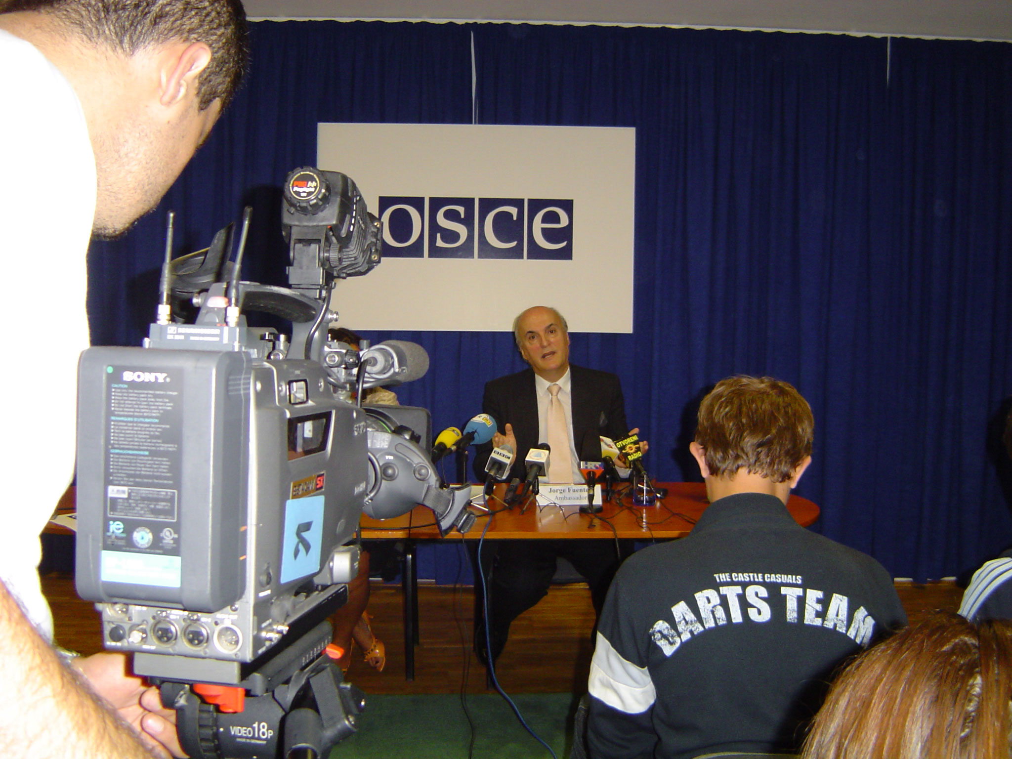 The Head of the OSCE Mission to Croatia, Ambassador Jorge Fuentes, presents to the media the Mission's six-monthly report on the progress Croatia made in meeting its international commitments, Zagreb, 12 July 2005.