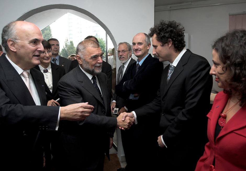 OSCE Mission to Croatia Head Jorge Fuentes (left) introduces Croatian President Stjepan Mesic to senior Mission officials at a ceremony to mark the signing of the Helsinki Final Act and the establishment of the CSCE/OSCE, Zagreb, 6 October 2005.