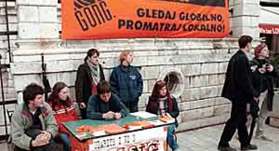 (GONG)GONG, a domestic NGO funded by the OSCE, disseminates information for minority council elections in Croatia on 18 May 2003. (GONG) Photo details