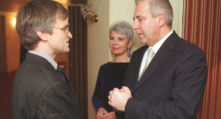 (Goran Mehkek)OSCE Mission Head Peter Semneby (left) with Croatian Prime Minister Ivo Sanader (right) and Deputy Prime Minister Jadranka Kosor, 14 January 2004. (Goran Mehkek) Photo details
