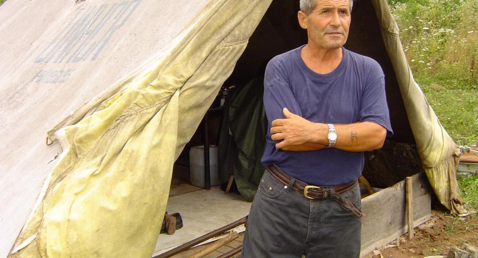 Gojko Jasnic returned in 1999 but was not able to apply for the reconstruction of his destroyed house. He lived in a UNHCR tent. The OSCE Mission works with media to raise awareness on refugee returns. (OSCE/Alessandro Fracassetti) Photo details