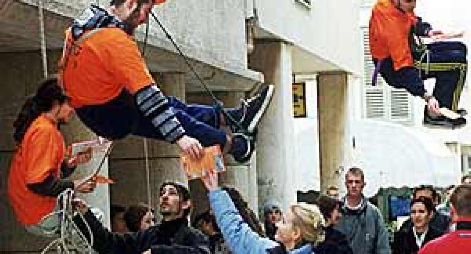 (GONG)Distribution of election information by volunteers of GONG, a domestic NGO supporting minority council elections in Croatia on 18 May 2003. (GONG) Photo details