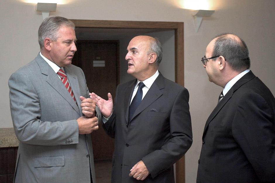 Ambassador Jorge Fuentes (right), Head of the OSCE Mission to Croatia, with Croatian Prime Minister Ivo Sanader in Zagreb, 11 September 2006.