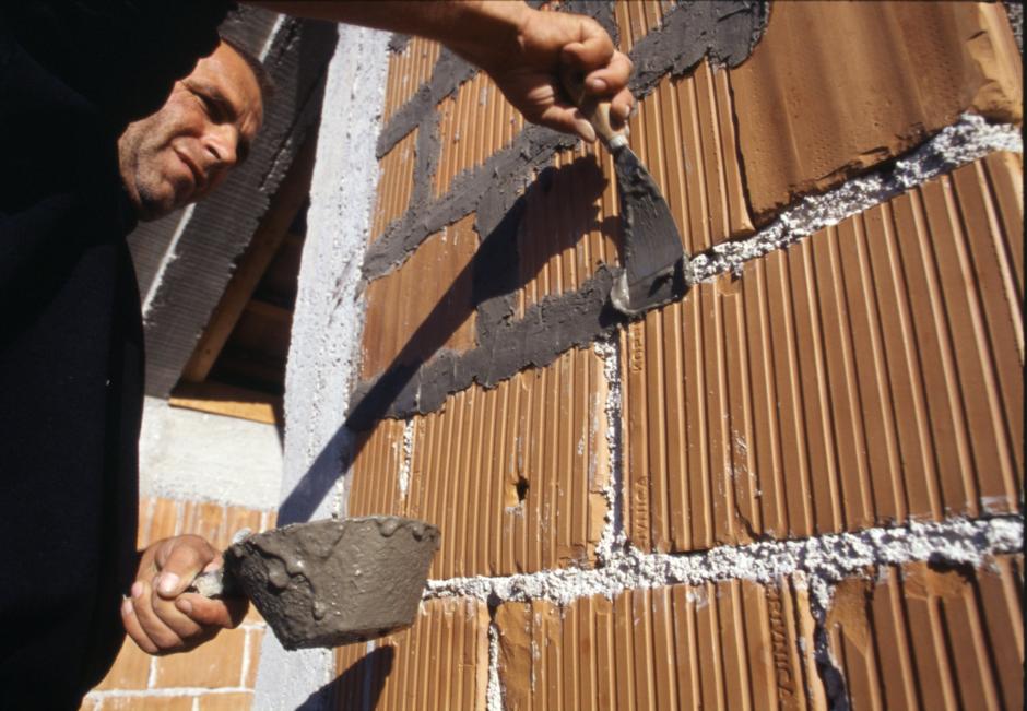 Construction work under way on a house in the village of Smilcic near Zadar, Croatia, 1 December 2005.